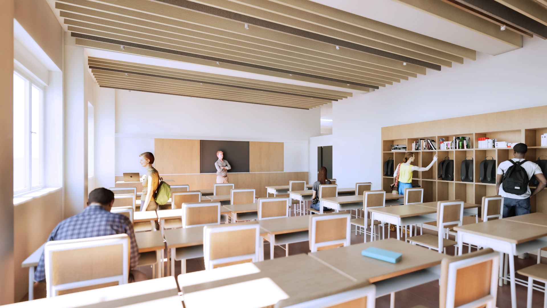 For the second phase of design of the College Los Naranjos we focus on the main building, a building built 60 years ago in which the search-light and warm materials was the premise, as well as the development of flexible spaces that allow the transformation of the building in function of the needs.