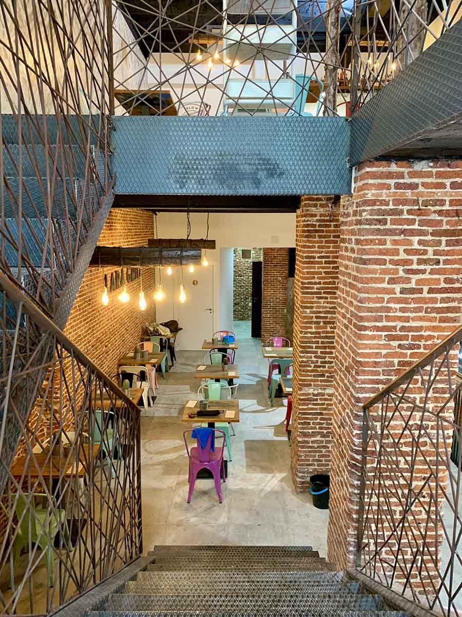 The ground floor, on the contrary, is characterized by the use of brick and cement rustic finish, creating a completely different environment than that of the upper floor.