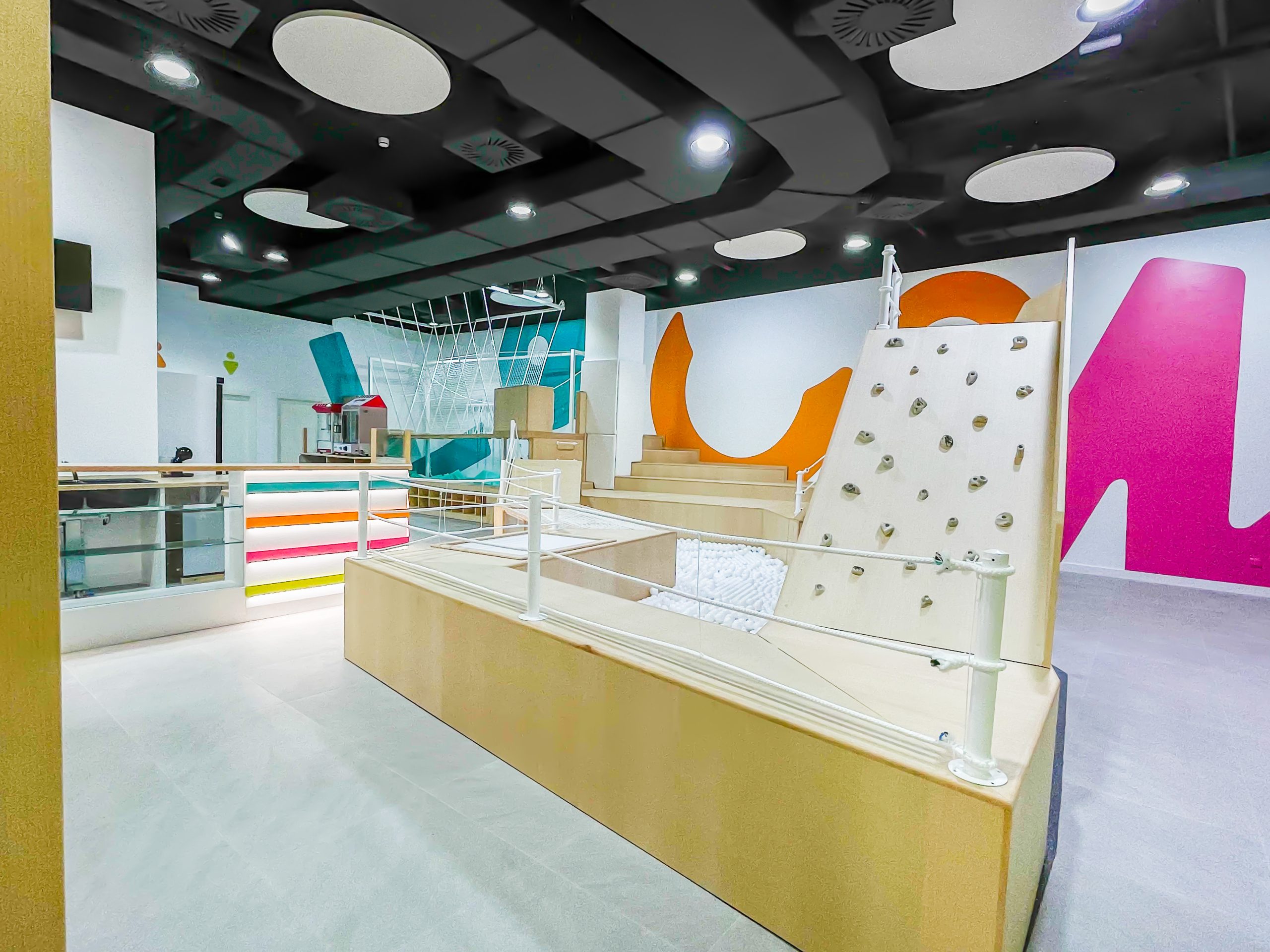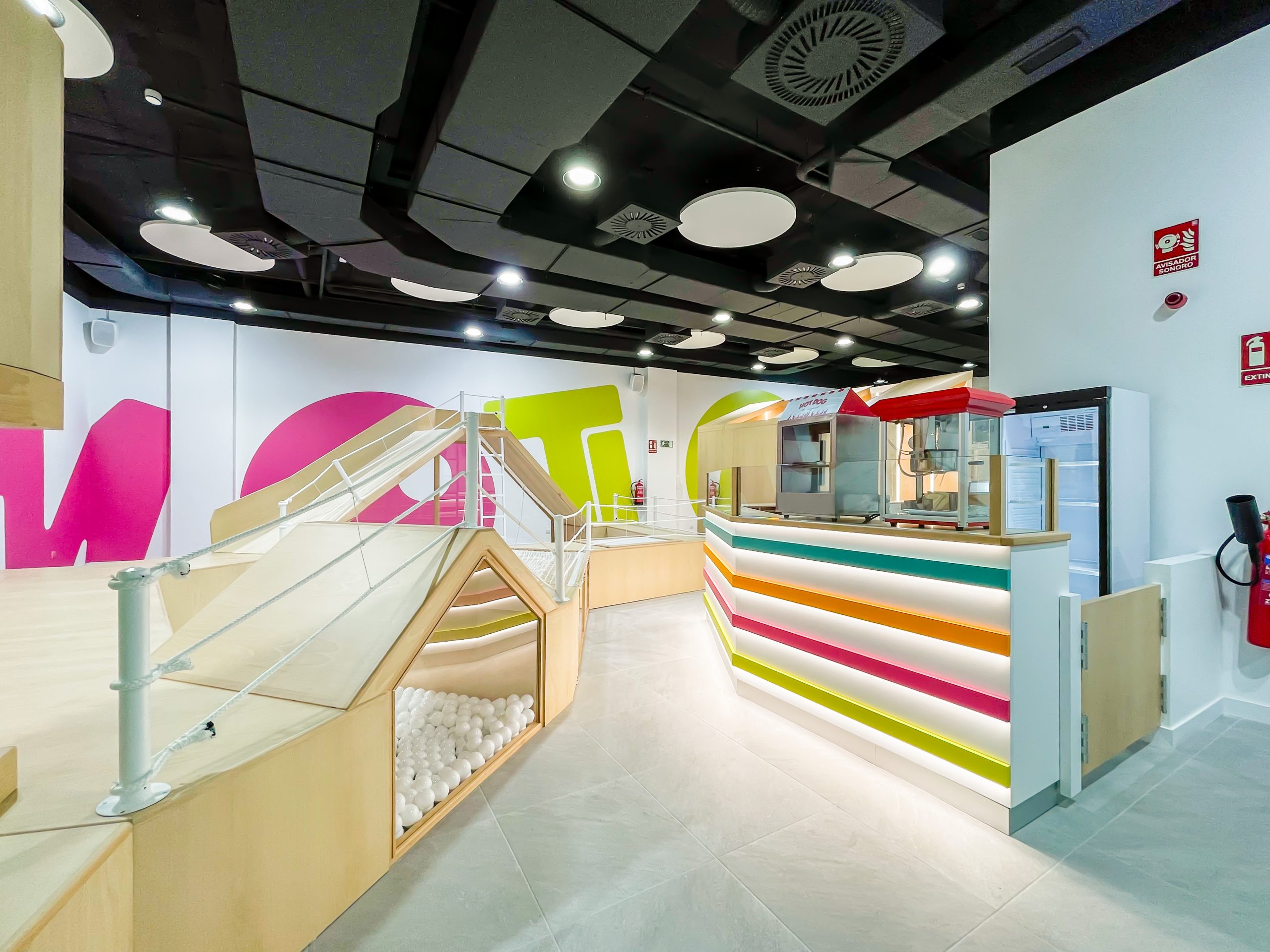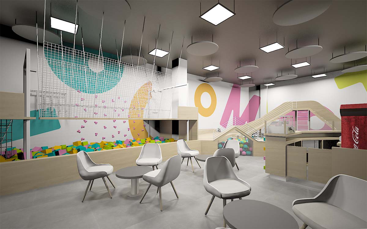 Located in the commercial centre X in Madrid Alcorcón, one of the most innovative in terms of the concept in the whole of Spain, in terms of the concept of extreme gaming. Due to the typology of the mall, the customers saw the need to create a local game for children up to 8 years, where not only entertain, but also serve as stimuli that will help spur the development of physical, mental, and social children, increasing their skills and abilities. The early stimulation plays a very relevant role, being the stimuli fundamental tools in the early stages of growth of the children.