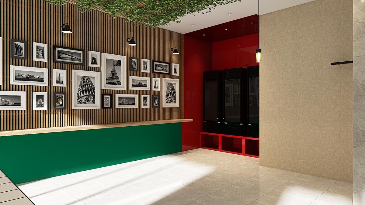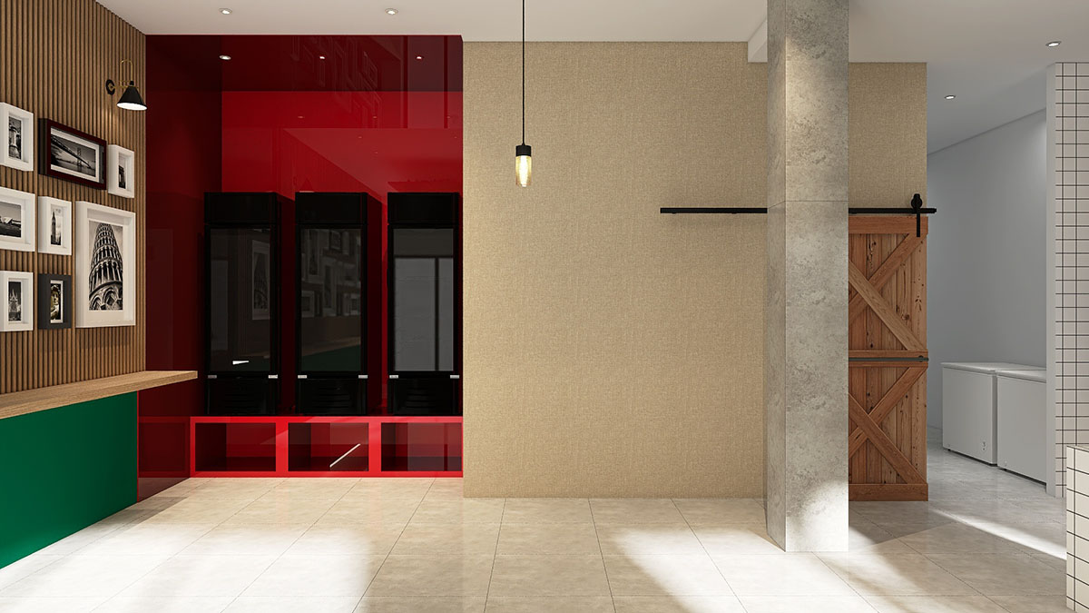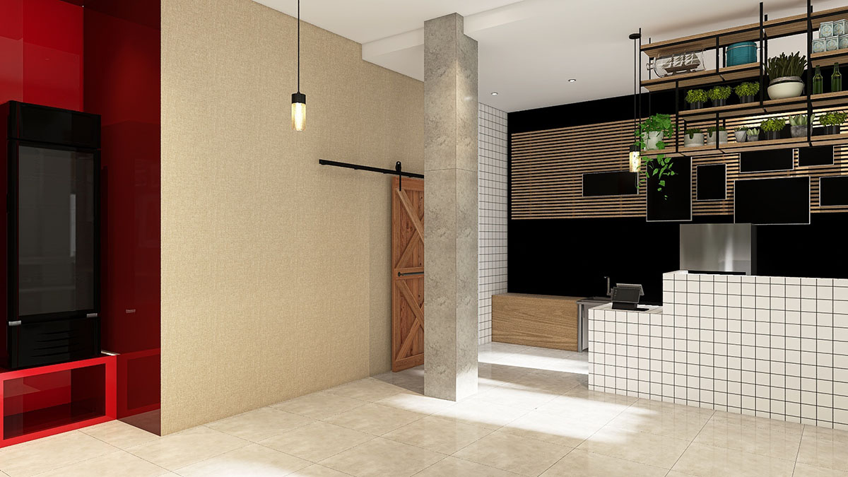 La solicitud del cliente era dejar el máximo de espacio abierto para la futura ubicación de mesas ya que para la apertura del local solo seria en formato «take away», así como también un espacio para venta de productos artesanales de elaboración propia, en ese sentido el diseño se baso en estos requerimientos.