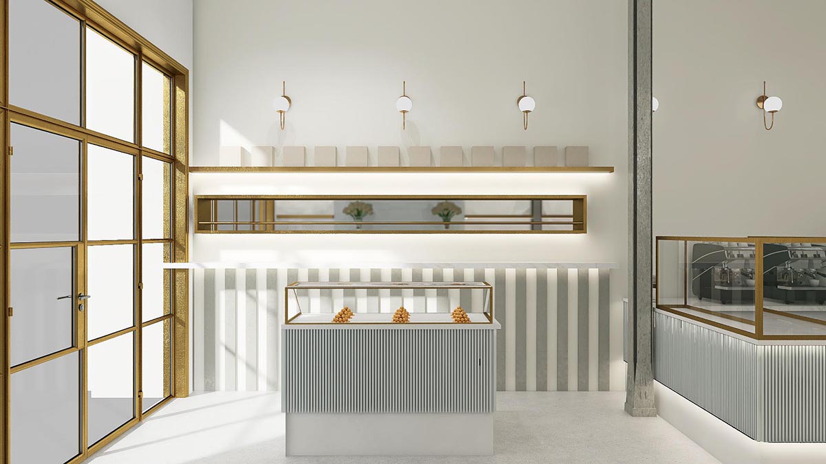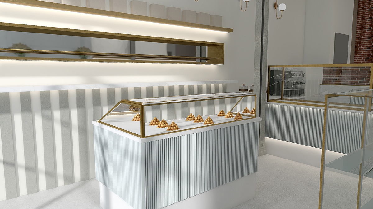 Todo el diseño va de la mano con la bombonería de autor que se fabricará y se venderá allí, siendo el producto uno de los elementos principales y por esa razón el uso neutral de los tonos en el interiorismo.